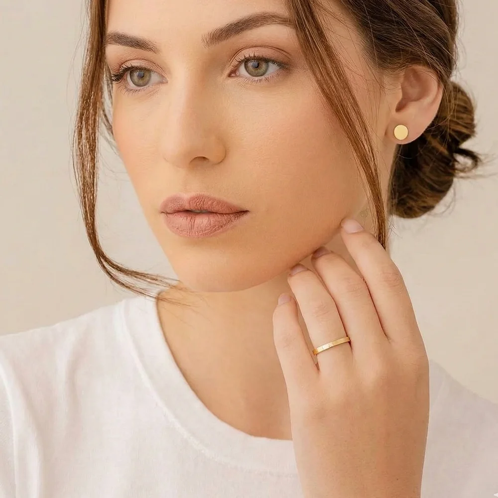 El modelo Flat se caracteriza por su superficie exterior recta y laterales definidos, lo que le da una apariencia moderna y elegante. Este diseño es muy apreciado por quienes prefieren alianzas minimalistas con una estética contemporánea.