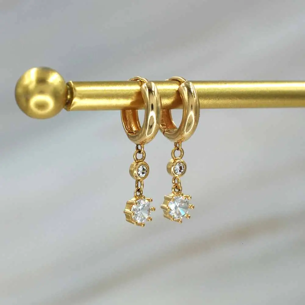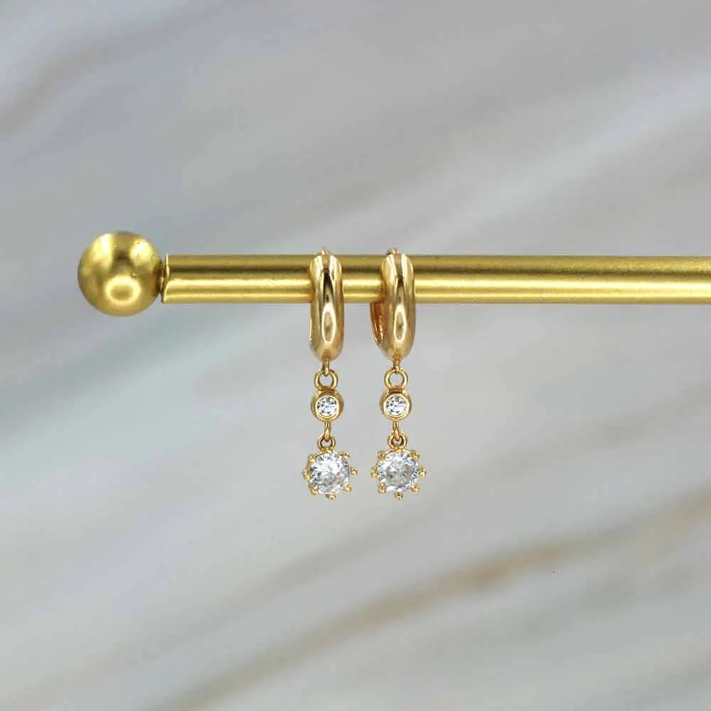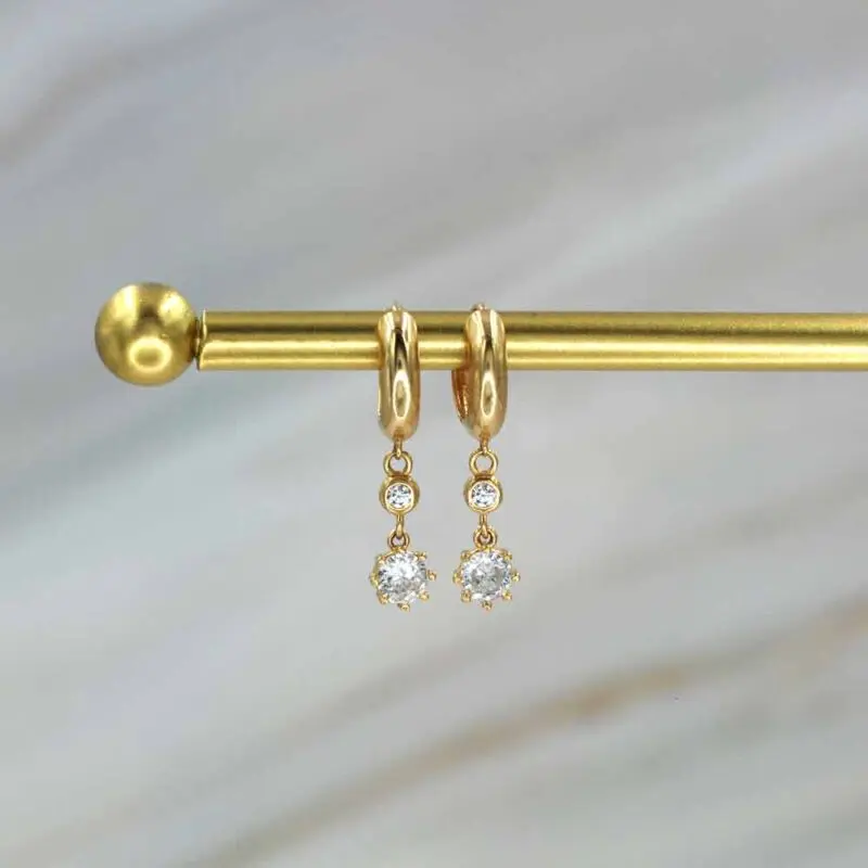 El oro amarillo de 18 quilates aporta calidez y lujo, mientras que la zirconia cúbica, conocida por su brillo y durabilidad, añade un toque radiante que complementa cualquier estilo. Perfectos para quienes buscan accesorios versátiles y distintivos, los Aros Argolla Punto de Oro 18k con zirconia cúbica son una joya imprescindible para cualquier ocasión.