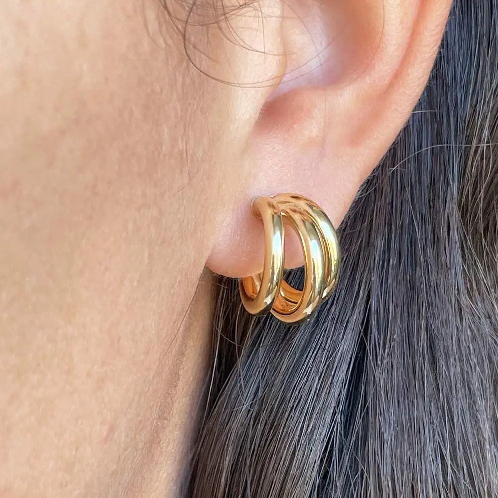 Perfectos para quienes buscan una joya atemporal y versátil, los Aros Tubo Triple Amelie son ideales para cualquier ocasión, ya sea una reunión especial, una celebración o para complementar un look diario con un toque de lujo.