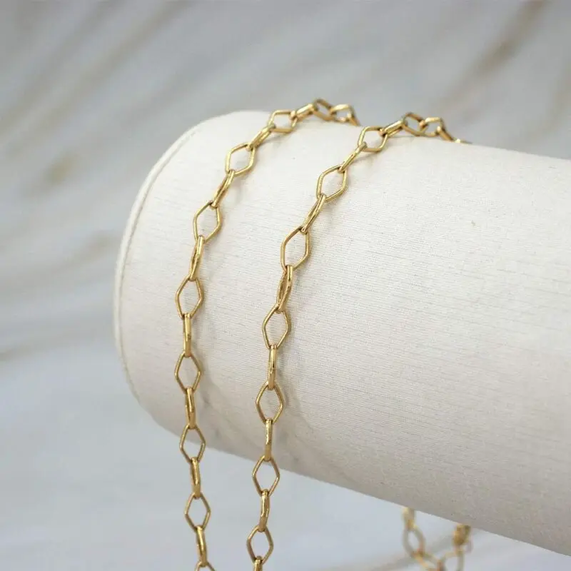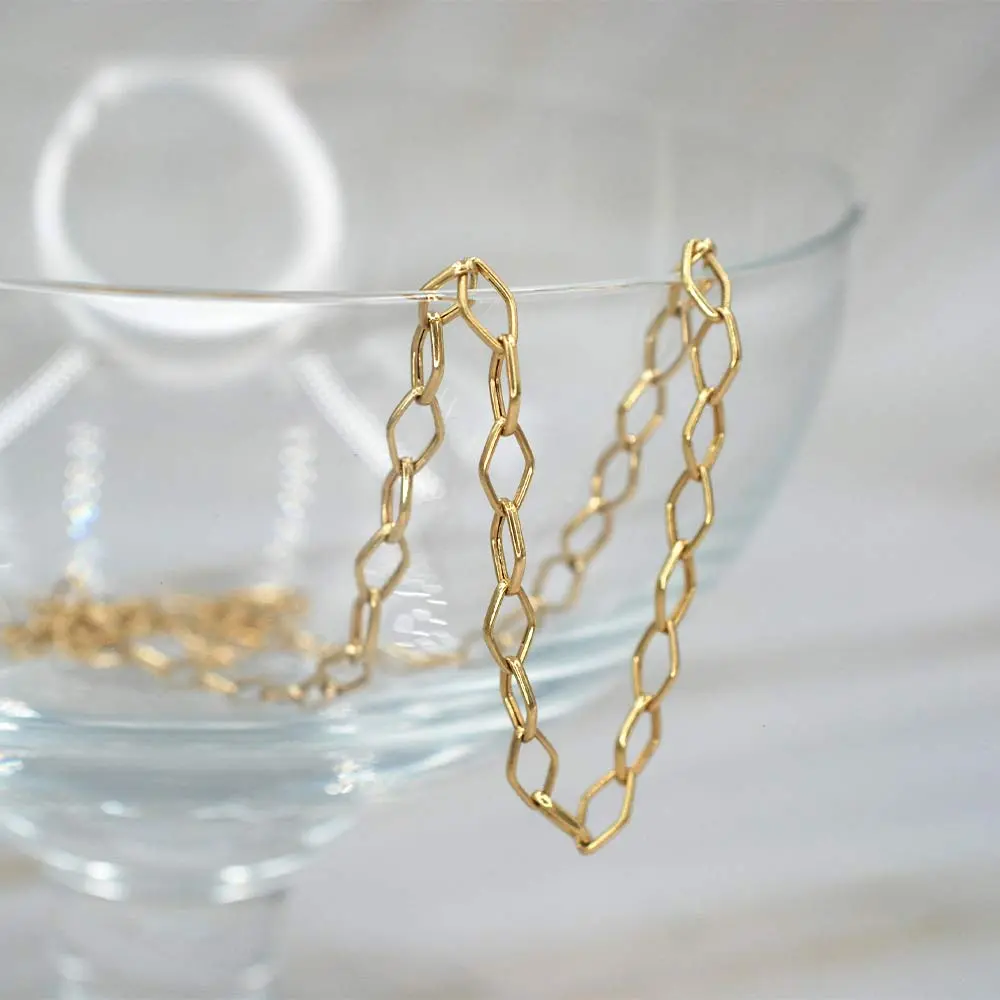 La Cadena Rombo de Oro 18K destaca por su diseño de eslabones en forma de rombo, que aporta un brillo sutil y un estilo sofisticado. Con 45 cm de largo y un peso de 3,5 gramos, es una joya versátil y elegante, ideal para cualquier ocasión.