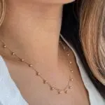 Este collar ha sido diseñado para ofrecer una versatilidad óptima. Gracias a su longitud ajustable, puedes usarlo de varias maneras para complementar tus atuendos, ya sea como choker, collar corto o más largo. Es una pieza esencial para cualquier colección de joyas que busque elegancia y adaptabilidad.