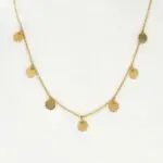 El Collar Medallas Oro 18K es una pieza moderna y elegante, perfecta para quienes buscan un toque de brillo sutil en su día a día. Fabricado en oro amarillo 18 quilates macizo, este collar destaca por su cadena rolo mini con siete medallas pequeñas colgando en la parte central, creando un efecto delicado y luminoso sobre la piel.