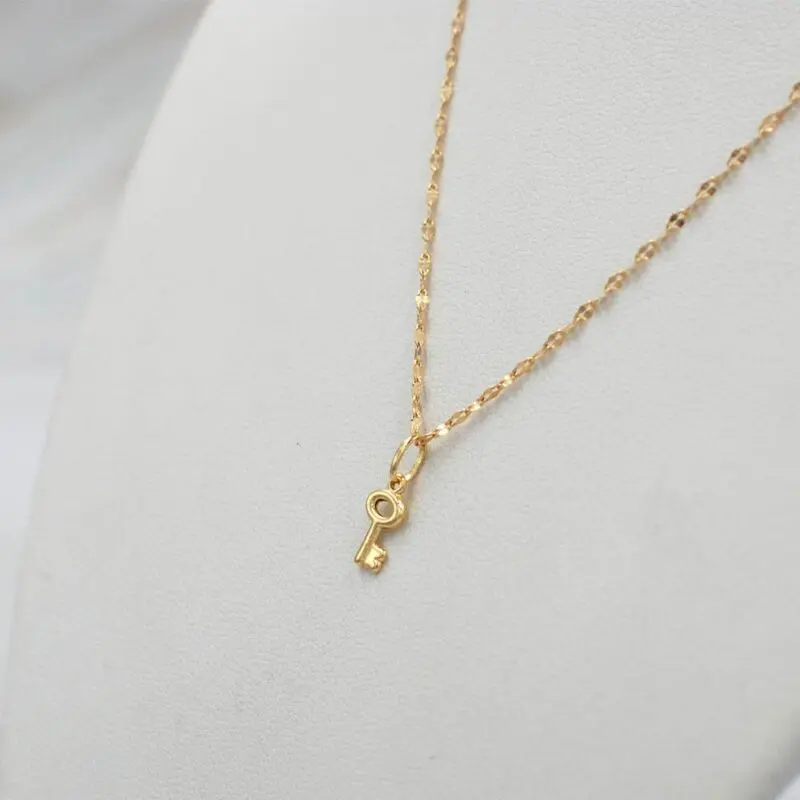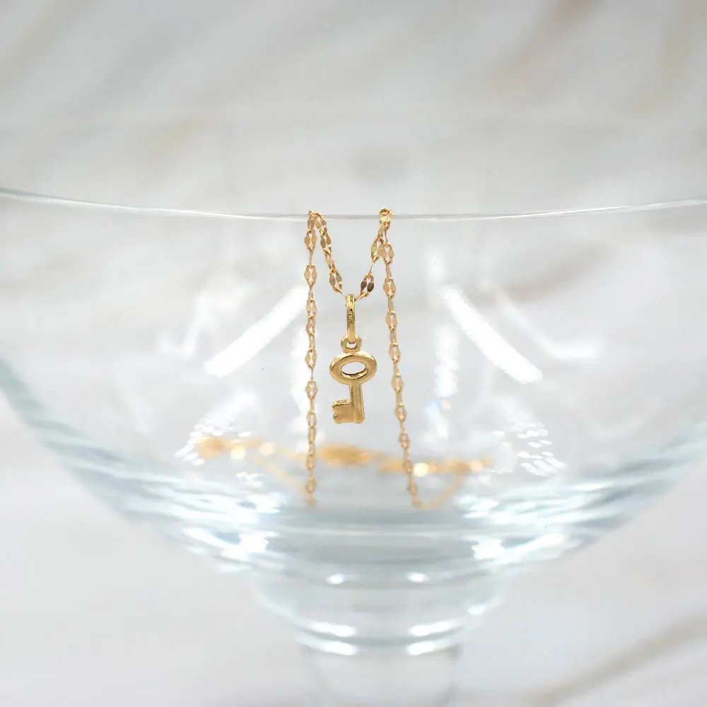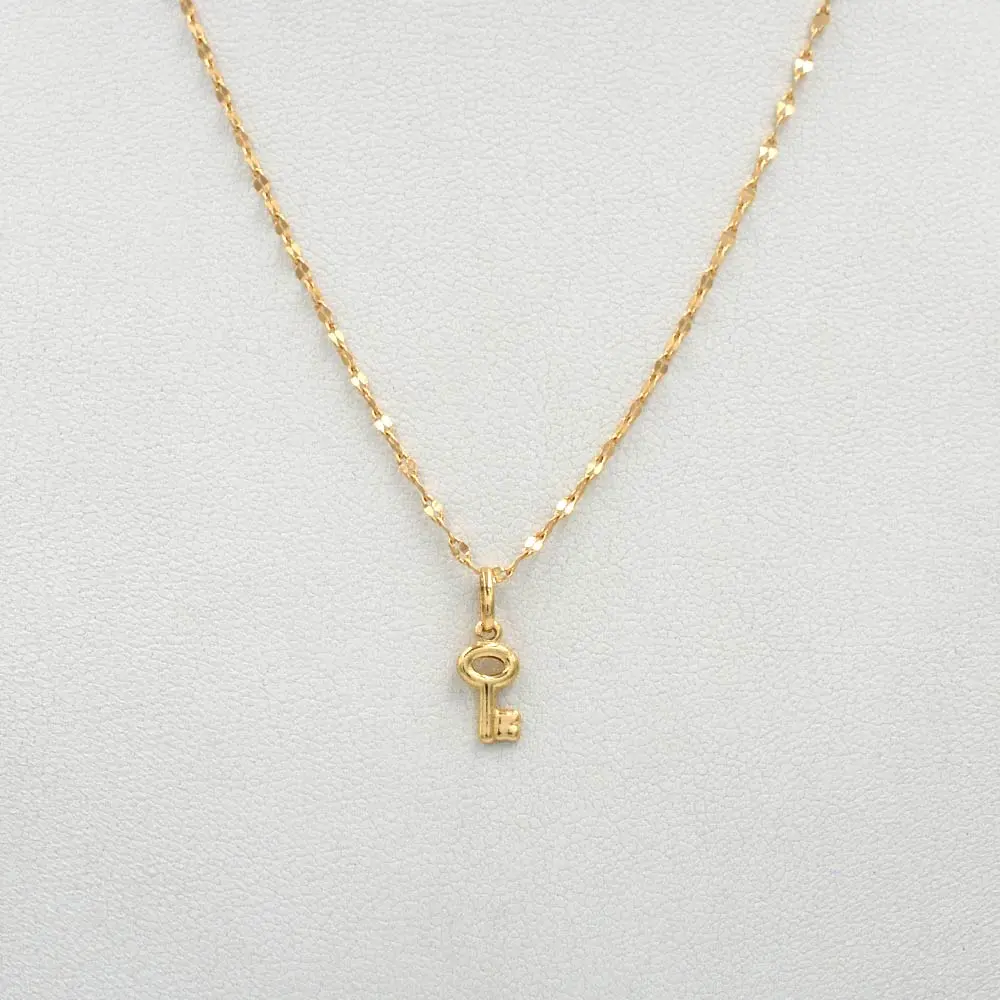 El Conjunto Llave Oro 18K es una joya delicada, elegante y llena de significado. Fabricado en oro amarillo 18 quilates, combina una fina cadena modelo caffe de 40 cm con un colgante mini en forma de llave, cuidadosamente pulido y diseñado para brillar con sutileza.