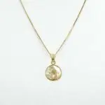 Este conjunto completo en Oro Amarillo 18K está compuesto por una medalla redonda de la Virgen Niña de 12 mm de diámetro, con fondo de nácar natural, y una cadena veneciana italiana de 45 cm, reconocida por su brillo y refinamiento.