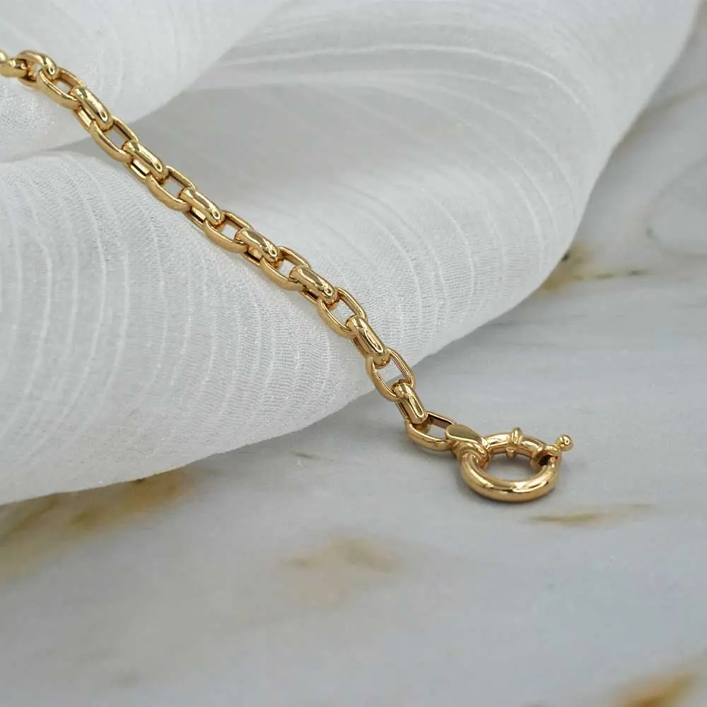 Realza tu estilo con la elegancia atemporal de nuestra Pulsera Forcetina de Oro 18k. Esta pulsera, meticulosamente elaborada en oro amarillo de 18 quilates, presenta eslabones ovalados y entrelazados, siguiendo el clásico y sofisticado diseño de la forcetina.